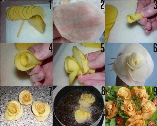 One potato can make 3 to 4 flowers. But it also depends on how you cut it. Mine was only 2 roses because I couldn’t really cut the flowers very thin. I’ll do better next time 🙂