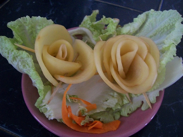 You can make lots of roses. It doesn’t only look beautiful but it tastes yummy. Look at how it was presented in number 9. The thinner your slices are, the prettier roses you will make and the crunchier they will be.